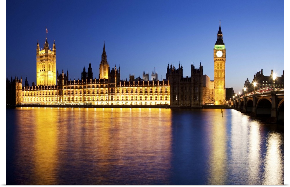 <p>Westminster Bridge and the Houses of Parliament viewed over the river Thames, London, England</p>