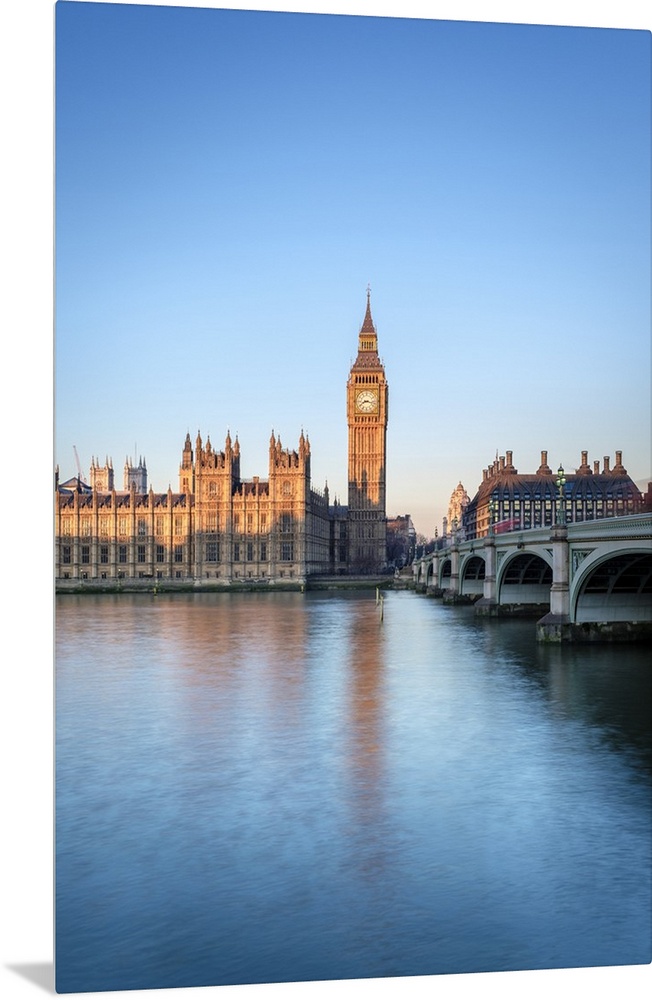 <p>United Kingdom, England, London. Westminster Bridge, Palace of Westminster and the clock tower of Big Ben (Elizabeth Tower), at dawn.</p>