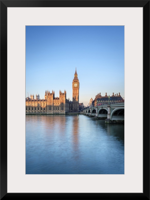 <p>United Kingdom, England, London. Westminster Bridge, Palace of Westminster and the clock tower of Big Ben (Elizabeth Tower), at dawn.</p>