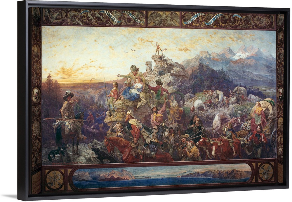 <p>1861, mural, 33 1/4 x 43 3/8. Located behind the western staircase of the House of Representatives chamber in the United States Capitol Building, Washington, DC, USA. Symbolizes Manifest Destiny, the belief that the United States was destined for Western exploration and expansion originating from the initial colonies along the Atlantic seaboard to the Pacific ocean.</p>