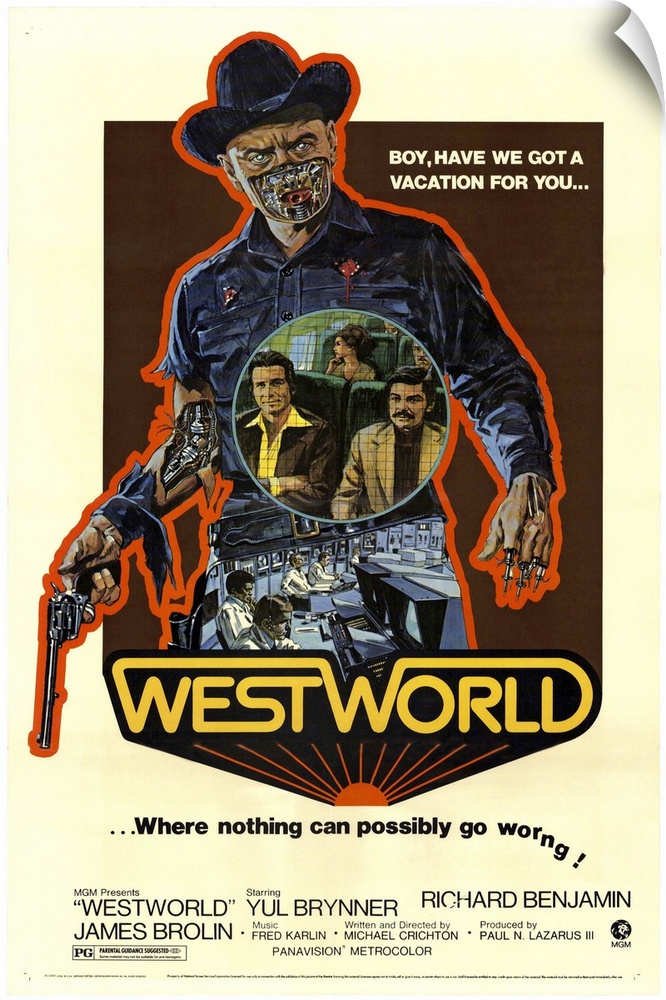 <p>Crichton wrote and directed this story of an adult vacation resort of the future which offers the opportunity to live in various fantasy worlds serviced by lifelike robots. Brolin and Benjamin are businessmen who choose a western fantasy world. When an electrical malfunction occurs, the robots begin to go berserk. Brynner is perfect as a western gunslinging robot whose skills are all too real.</p>