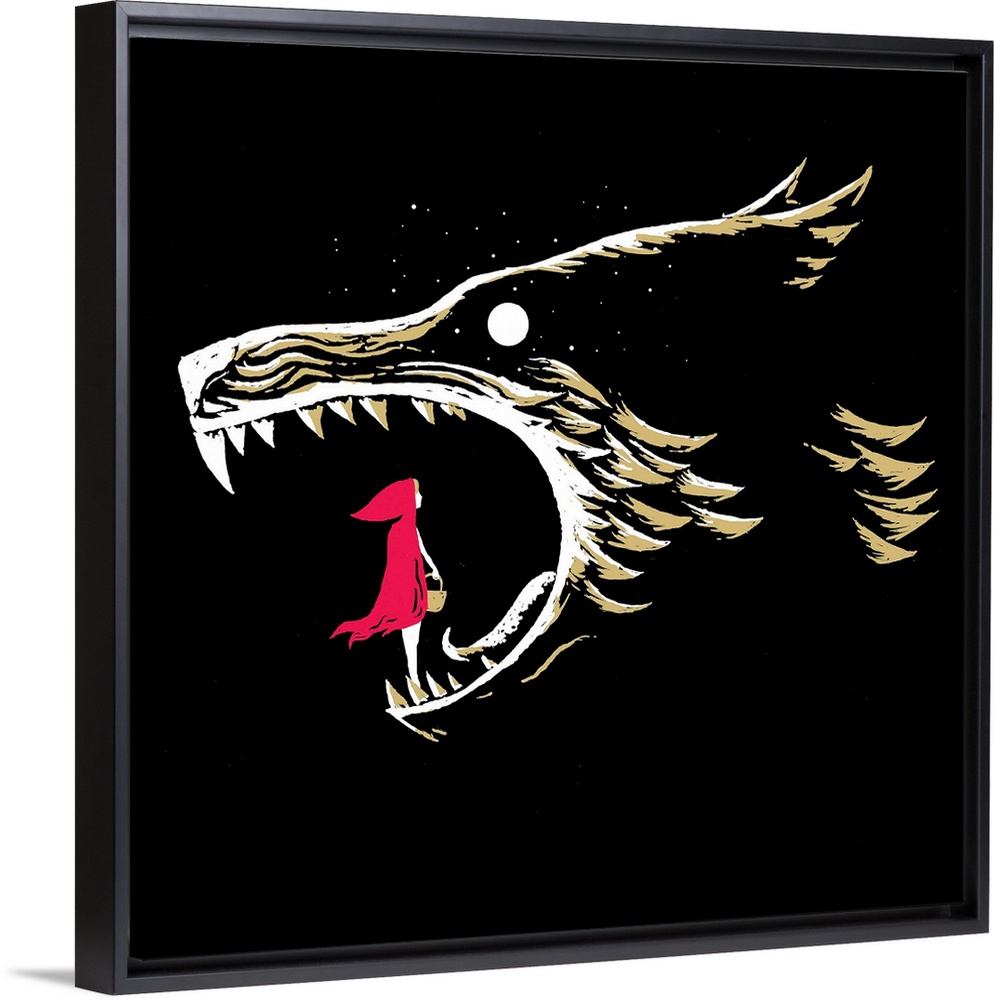 <p>A square illustration of little red riding hood at the base of the wolf's mouth.</p>