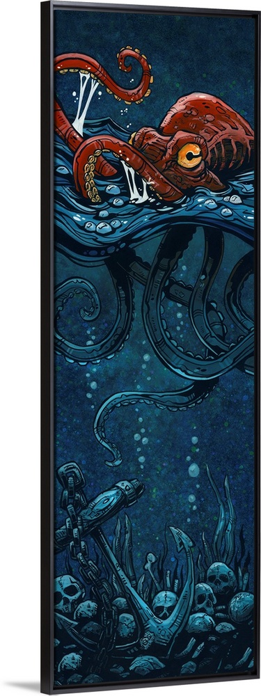 Art Blue Wall Art David Lozeau Painting Wildlife Marine Life Octopus and Squid