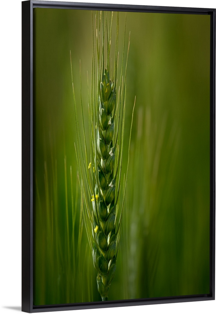 <p>Close up of a green stalk of wheat.</p>
