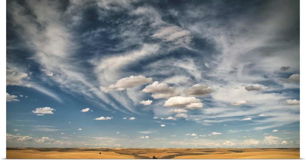 <p>Wheat field under a blue sky with cloud, Palouse, Washington, United States of America.</p>