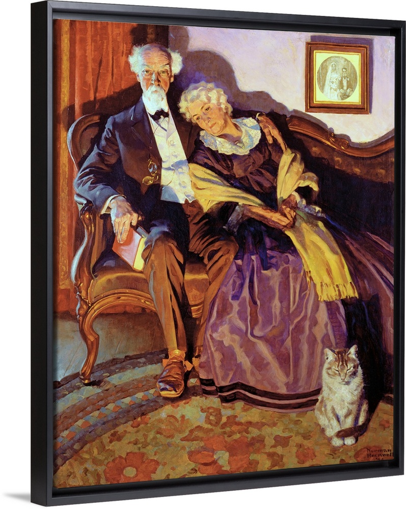 <p>Norman Rockwells paintings and illustrations are popular for their reflection of American culture. His artwork depicts traditional home and family life while evoking a sense of nostalgia in its viewers and utilizing humor to provide an escape from the mundane. Alternate Title Elderly Couple Seated on Sofa. Approved by the Norman Rockwell Family Agency</p>