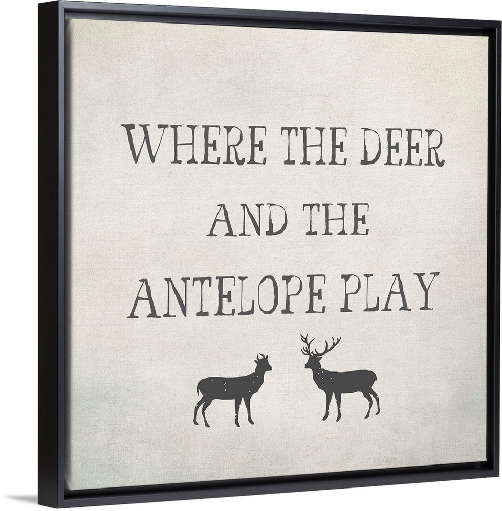<p>"Where the Deer and Antelope" with deer on a light gray background.</p>