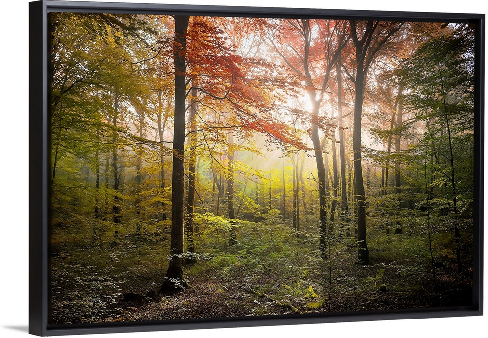 <p>Fine art photo of a forest in the fall with glowing afternoon light.</p>