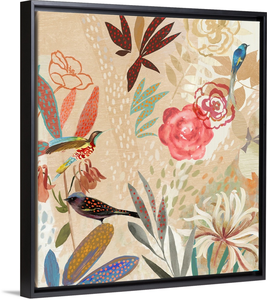Art Maximalism Contemporary Art Plants and Flowers Florals Asia Jensen Orange Wall Art Coral Painting Bird Garden Birds