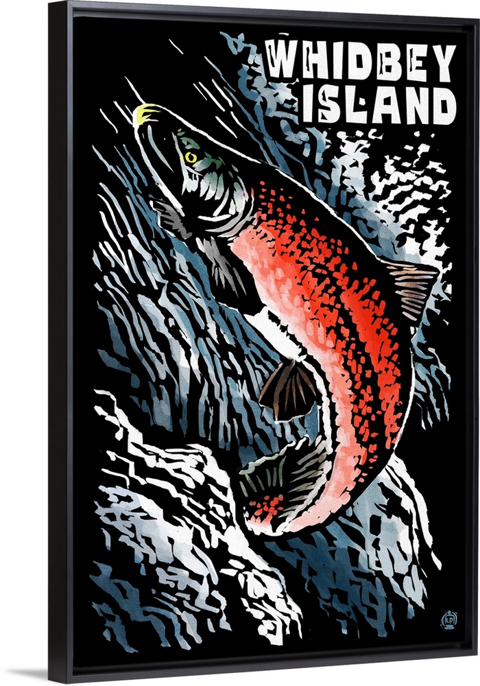 <p>Whidbey Island, Washington, Salmon, Scratchboard</p>