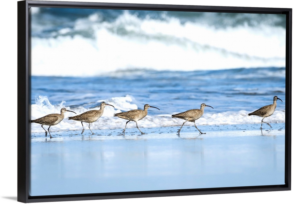 <p>Whimbrels (Numenius phaeopus) look for sand crabs on the beach in Oregon; Newport, Oregon, United States of America</p>