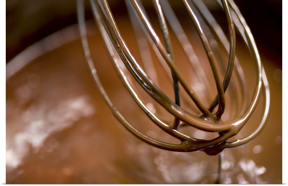 <p>Whisking the chocolate in a saucepan to melt the larger pieces</p>