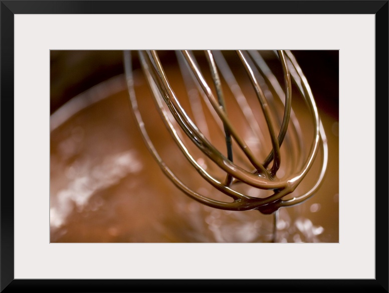 <p>Whisking the chocolate in a saucepan to melt the larger pieces</p>