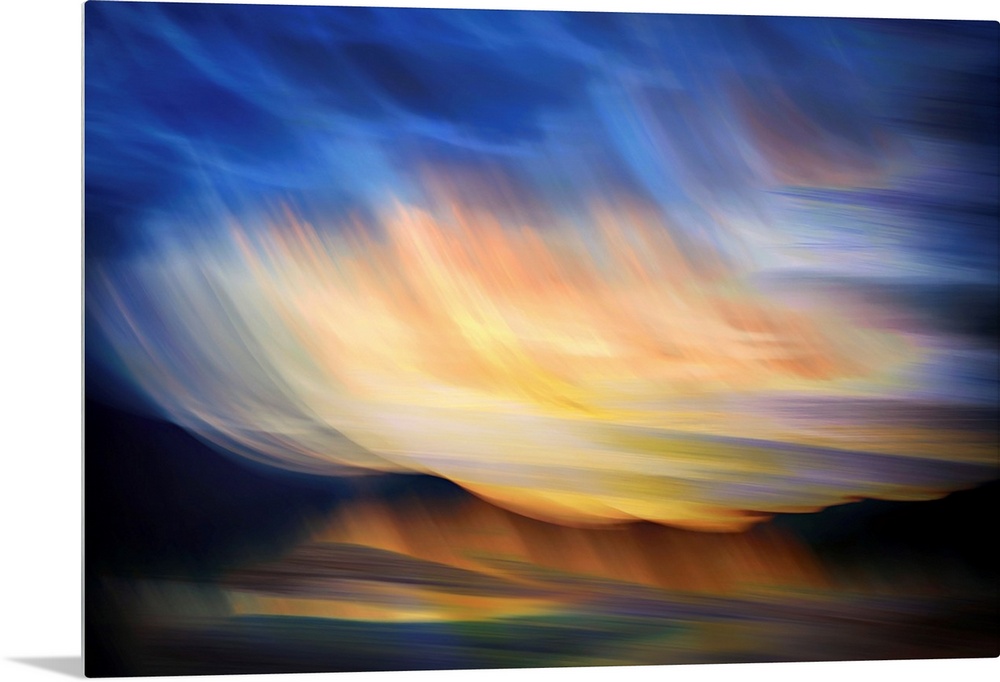 <p>Abstract image of Slocan lake in British Columbia, Canada, giving an impression of a sunset on the lake. The image was made using the in-camera burst multiple exposure + ICM (Intentional Camera Movement) technique. This intensifies the shapes and colors and keeps essential detail, while blurring a lot of other detail. Ursula Abresch Fantastic Landscapes Collection.</p>