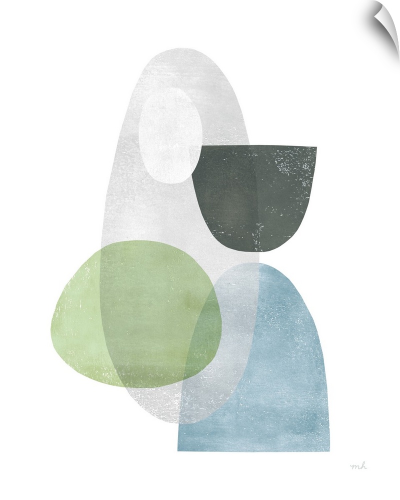 <p>A modern design of distressed, transparent curved shapes in muted colors, overlapping each other on a white background.</p>