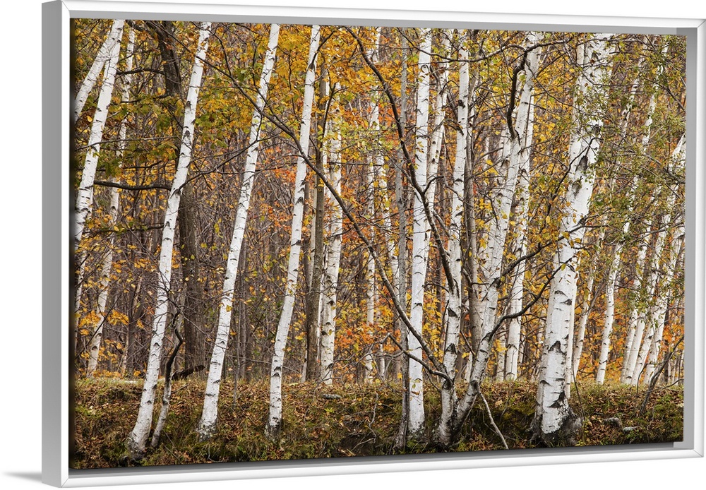 <p>White Birch trees and Sugar Maple trees in the Fall in Westminster, Vermont.</p>