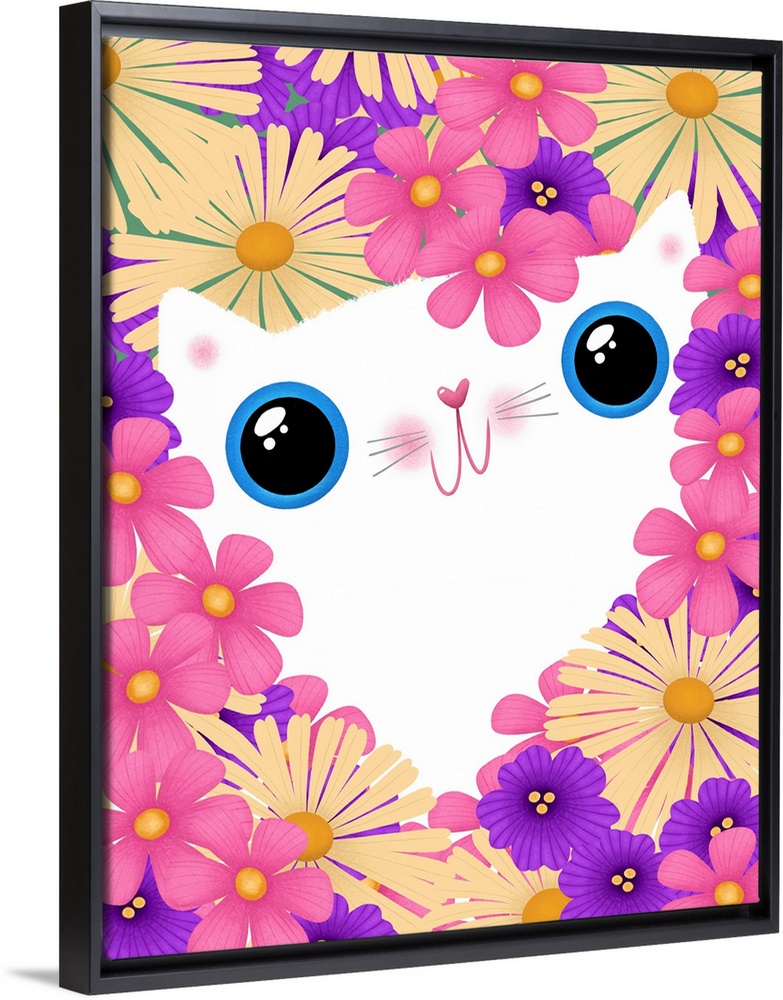 Art Children's Art Girls Room Gabriela Avila Decorative Art Florals Graphic Art Pink Wall Art Wildlife Cat