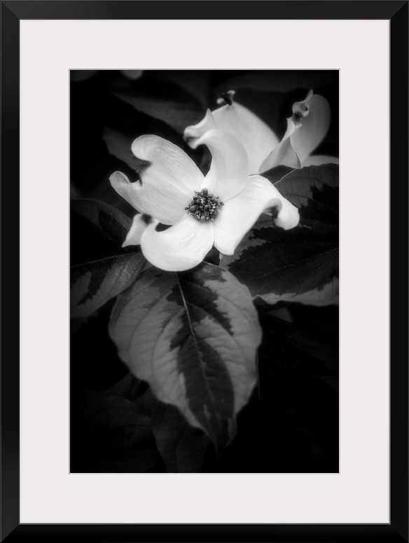 <p>Dogwood flower in black and white</p>