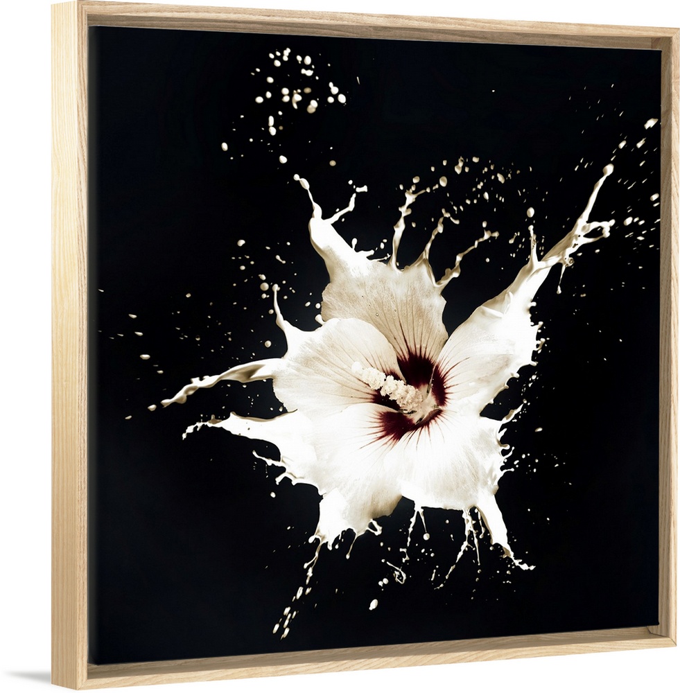 <p>White flowers with milk splash on black background.</p>