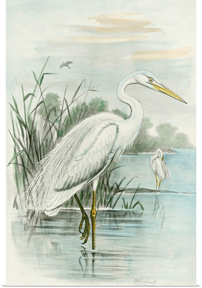 Art Painting Vintage Art Illustrations Animals Wildlife Bird Heron and Egret