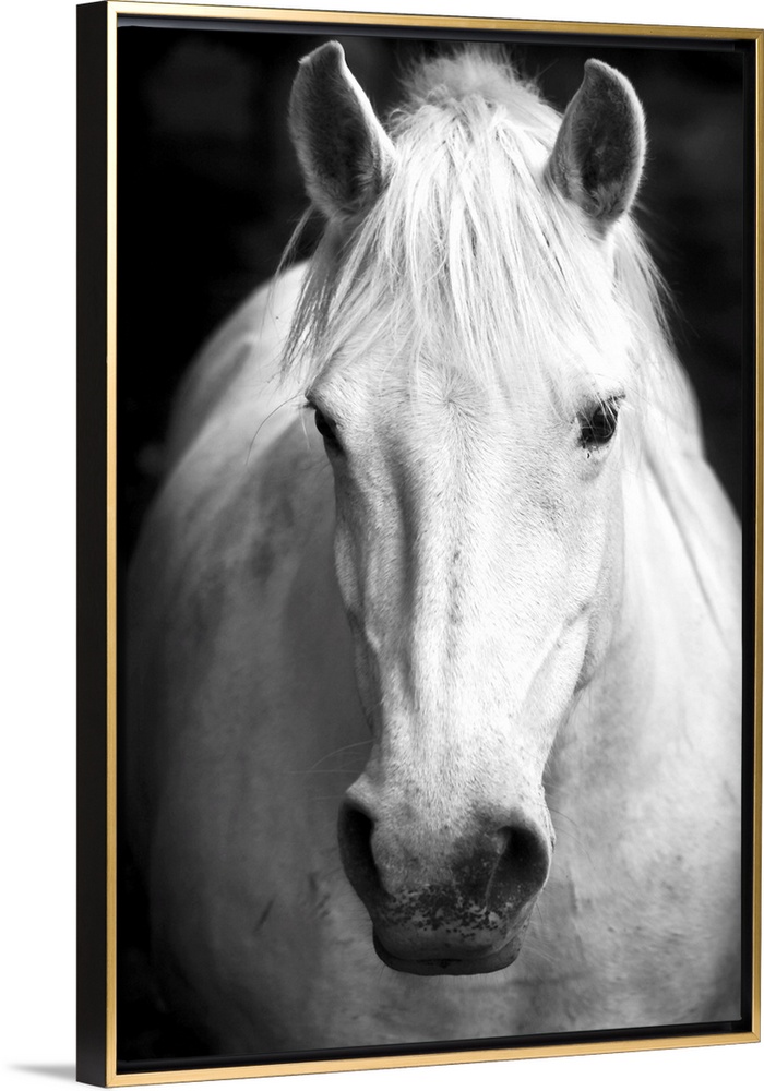 <p>White horse's black and white art portrait</p>