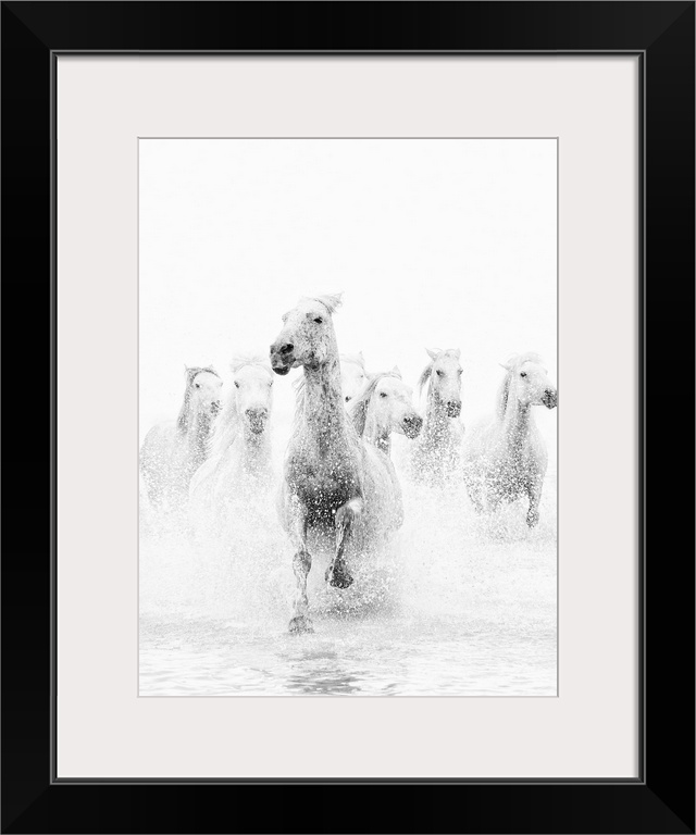 <p>White horses of Camargue running through the water, Camargue, France</p>