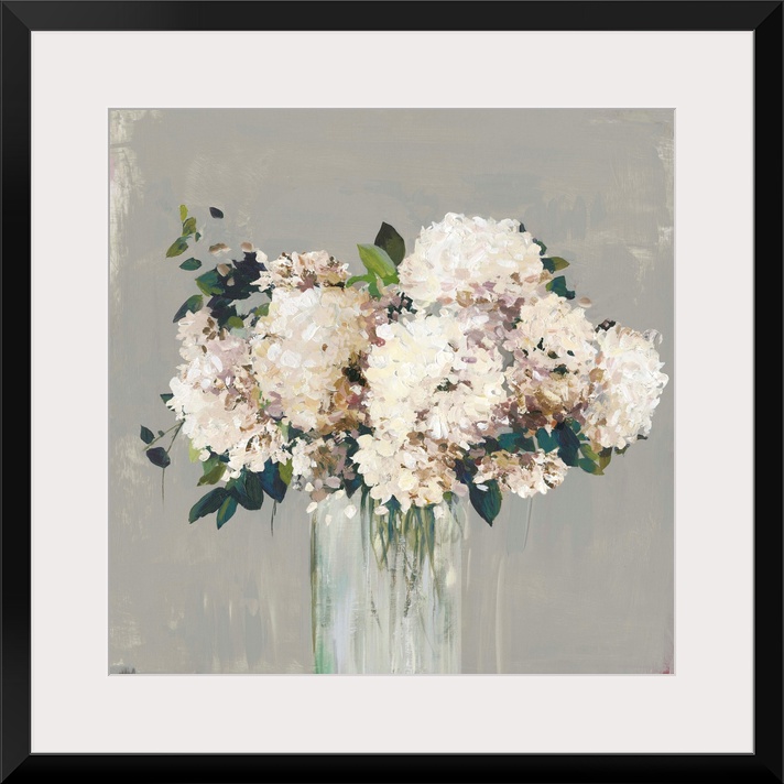 <p>Bouquet of hydrangeas painted with a subdued color palette.</p>