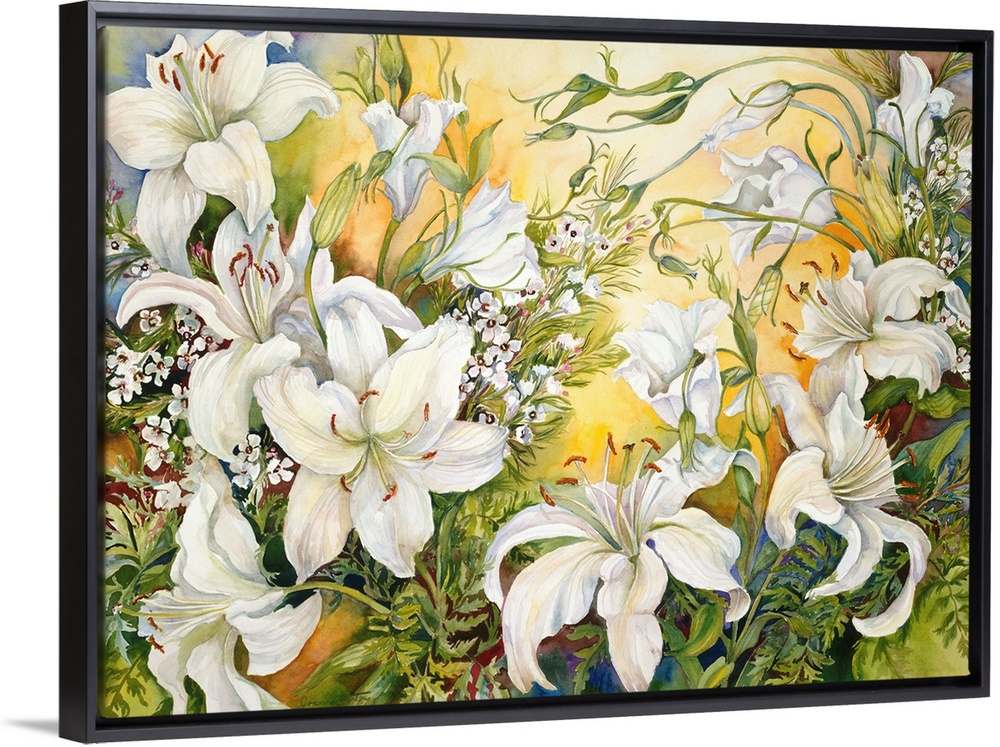<p>Colorful contemporary painting of white lilies.</p>
