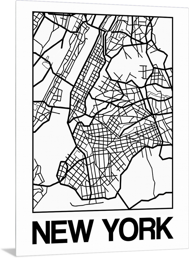 <p>Contemporary minimalist art map of the city streets of New York.</p>
