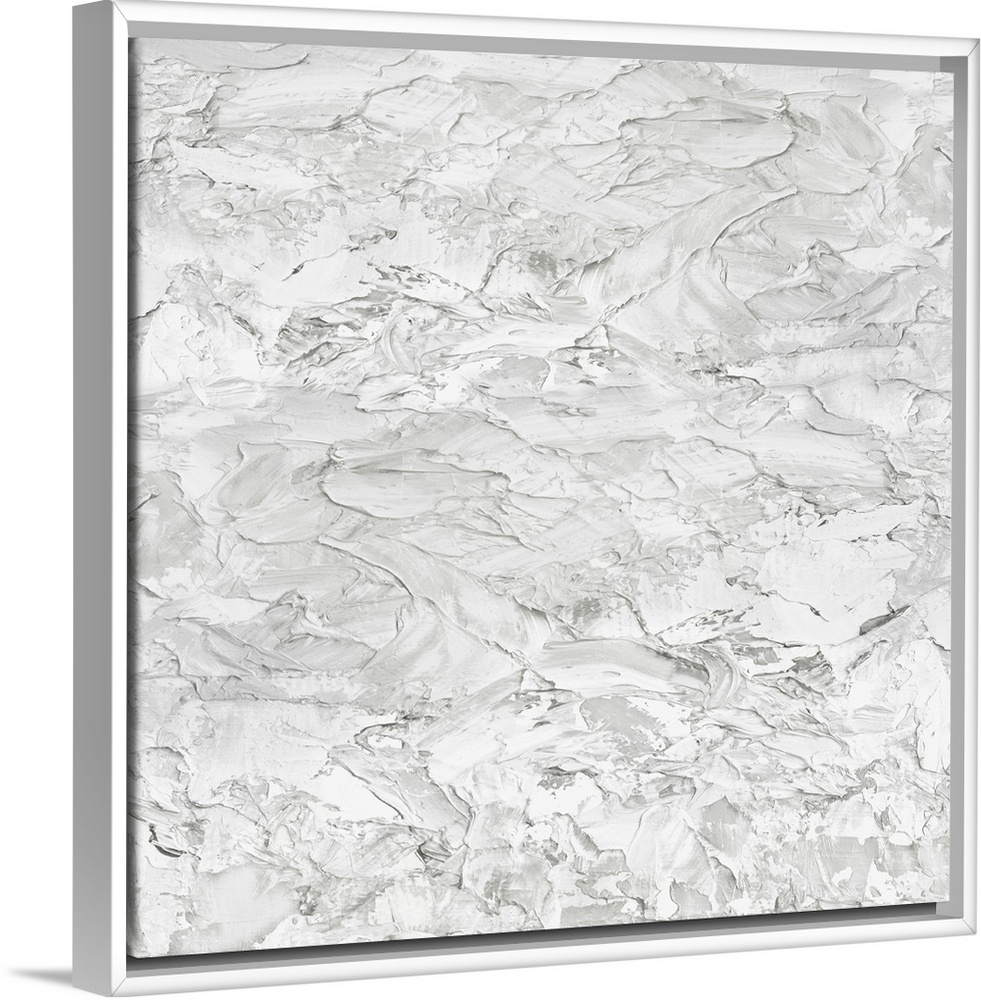 <p>Originally painted with thick white textured paint. The final item is digitally printed in shades of white and gray.</p>