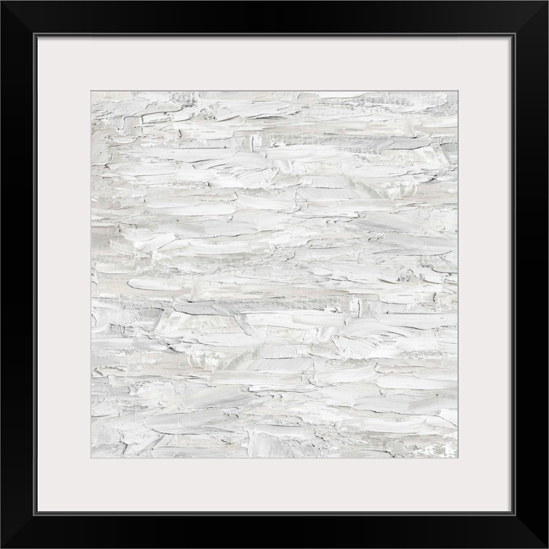 <p>Originally painted with thick white textured paint. The final item is digitally printed in shades of white and gray.</p>