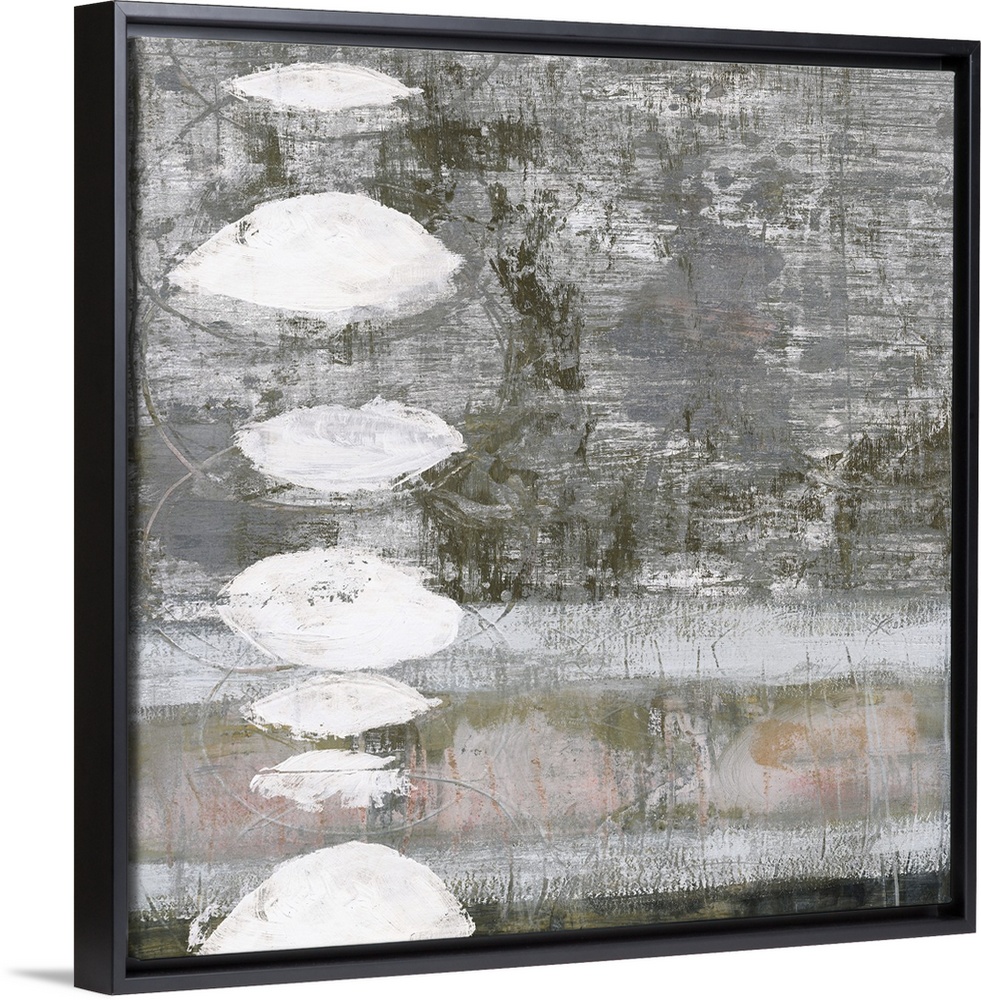 <p>Abstract painting using neutral tones and textured shapes.</p>