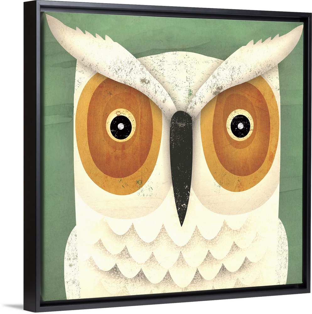 <p>Contemporary artwork of a white owl with an intense gaze in its eyes.</p>