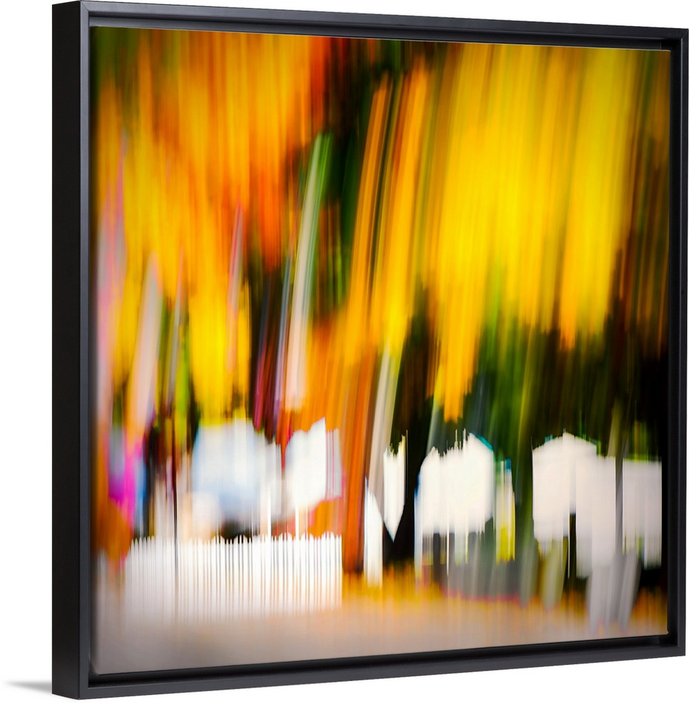 <p>Abstract photography - the image was made using the ICM (Intentional Camera Movement) technique. It shows a group of trees in full Fall glory, behind the trees a white house, in front a picket fence. Ursula Abresch Abstract Trees Collection.</p>