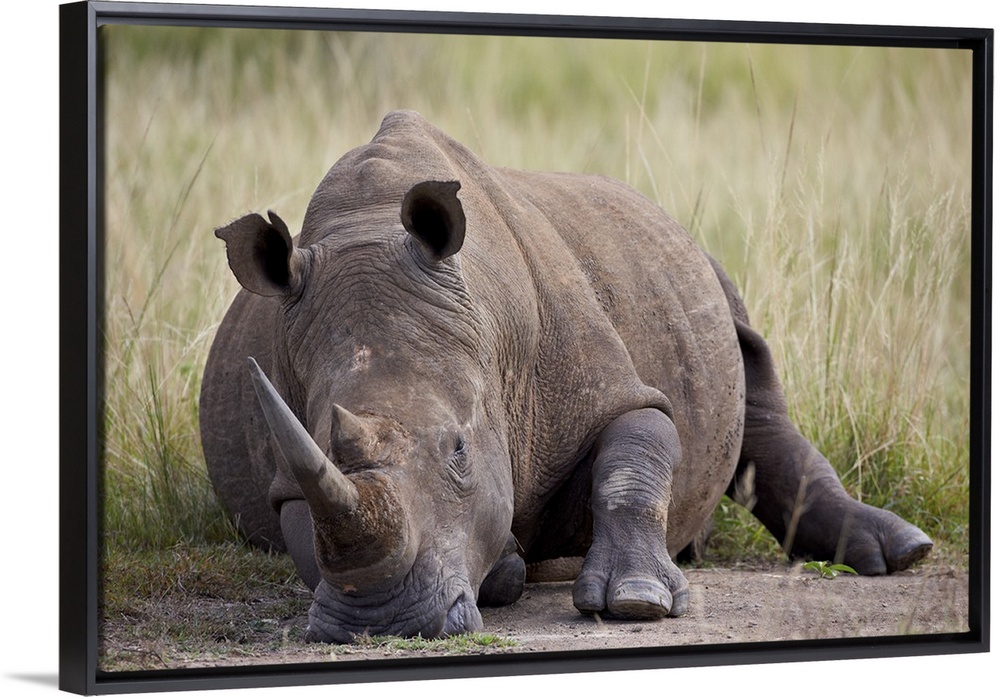 <p>White rhinoceros (Ceratotherium simum) napping, Hluhluwe Game Reserve, South Africa, Africa.</p>