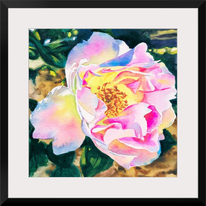 <p>Square watercolor painting of a White Rose with pink accents.</p>