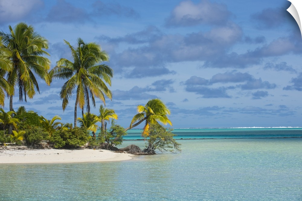 <p>White sand bank in the turquoise waters of the Aitutaki lagoon, Rarotonga and the Cook Islands</p>