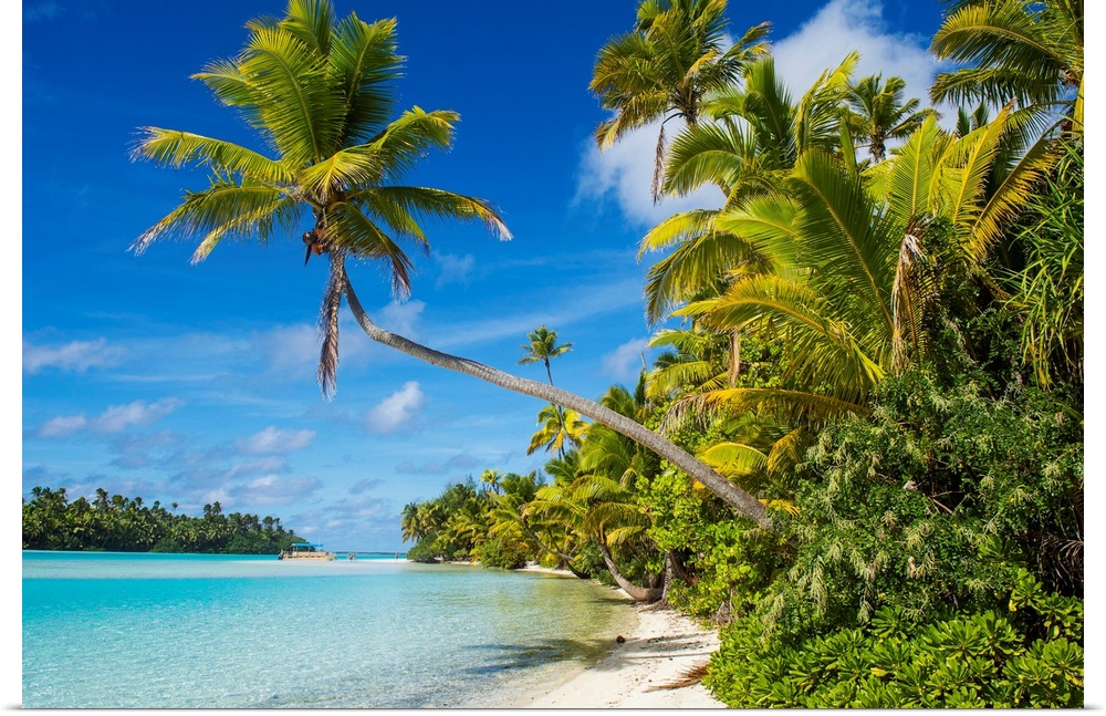 <p>White sand bank in the turquoise waters of the Aitutaki lagoon, Rarotonga and the Cook Islands</p>