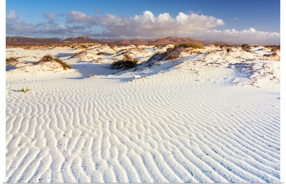 <p>White sand of desert dunes shaped by wind, El Cotillo, La Oliva, Fuerteventura, Canary Islands, Spain, Atlantic, Europe</p>