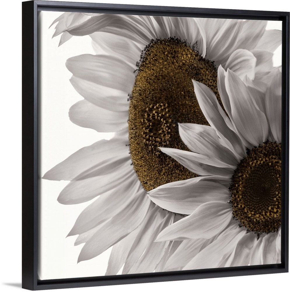 <p>Two colorless sunflowers photographed in front of a blank backdrop.</p>