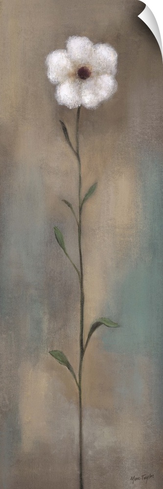 <p>Contemporary painting of a single white flower with a long stem against an earth toned background.</p>
