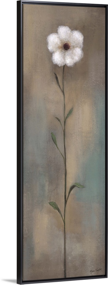 <p>Contemporary painting of a single white flower with a long stem against an earth toned background.</p>