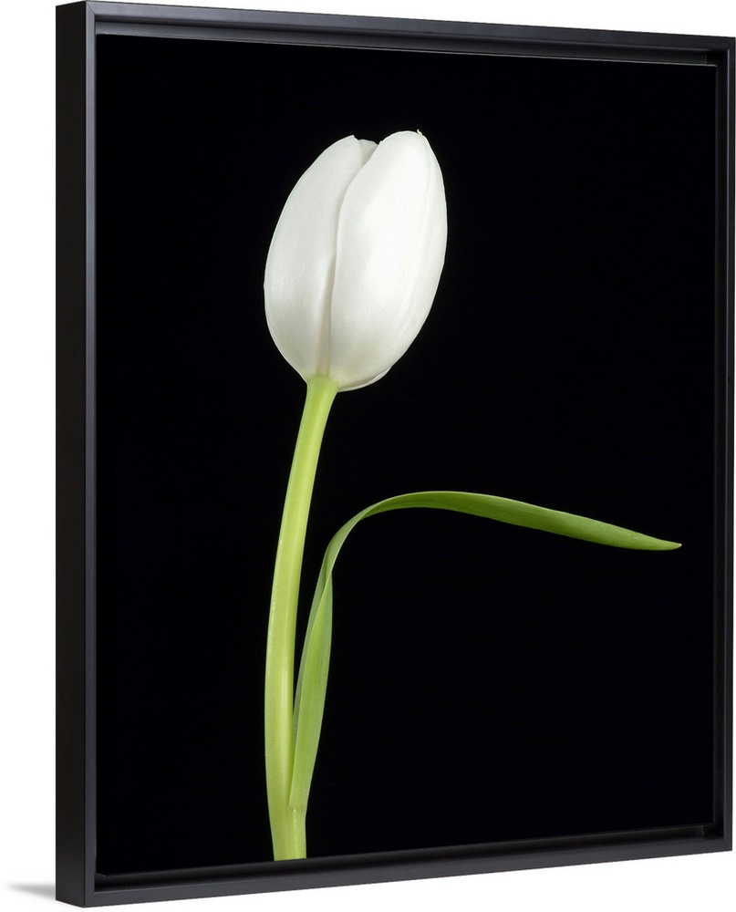 <p>Big canvas print of a single flower contrasted against a dark background.</p>
