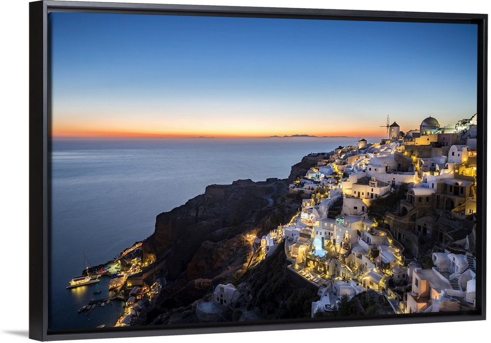 <p>Long exposure sunset view over the whitewashed buildings and windmills of Oia, Santorini, Cyclades, Greek Islands, Greece, Europe</p>