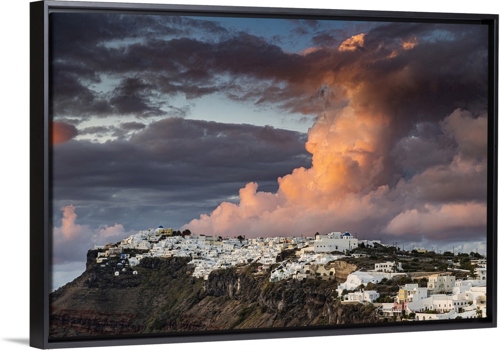 <p>Whitewashed houses on the caldera at sunset, Fira, Santorini, Cyclades, Greek Islands, Greece, Europe</p>