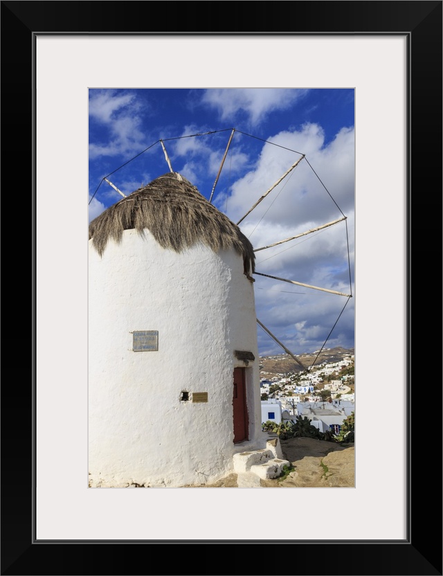 <p>Whitewashed windmill and houses, Mykonos Town, Mykonos, Cyclades, Greek Islands, Greece</p>