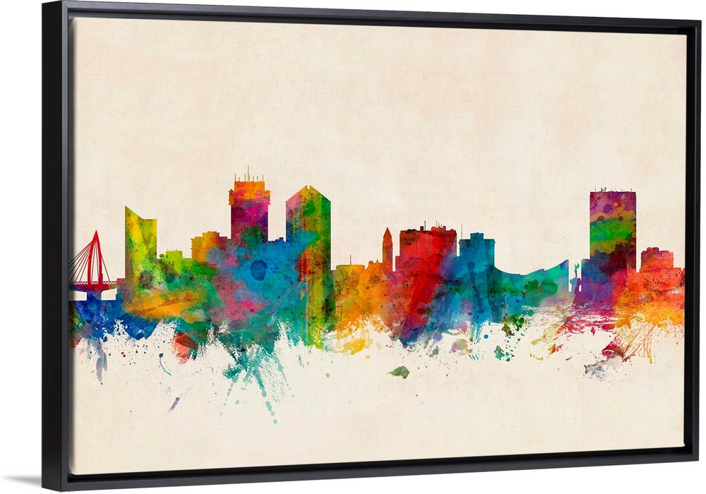 <p>Contemporary piece of artwork of the Wichita skyline made of colorful paint splashes.</p>