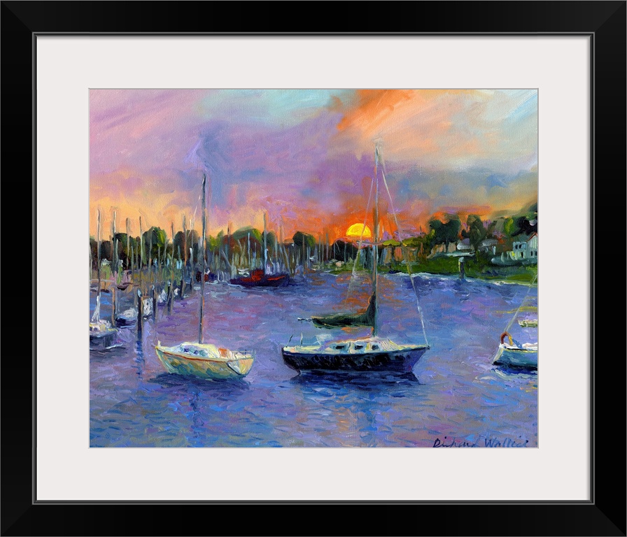 Art Blue Wall Art Contemporary Art Rivers, Lakes, and Oceans Landscapes Harbor Painting Transportation Boat Richard Wallich