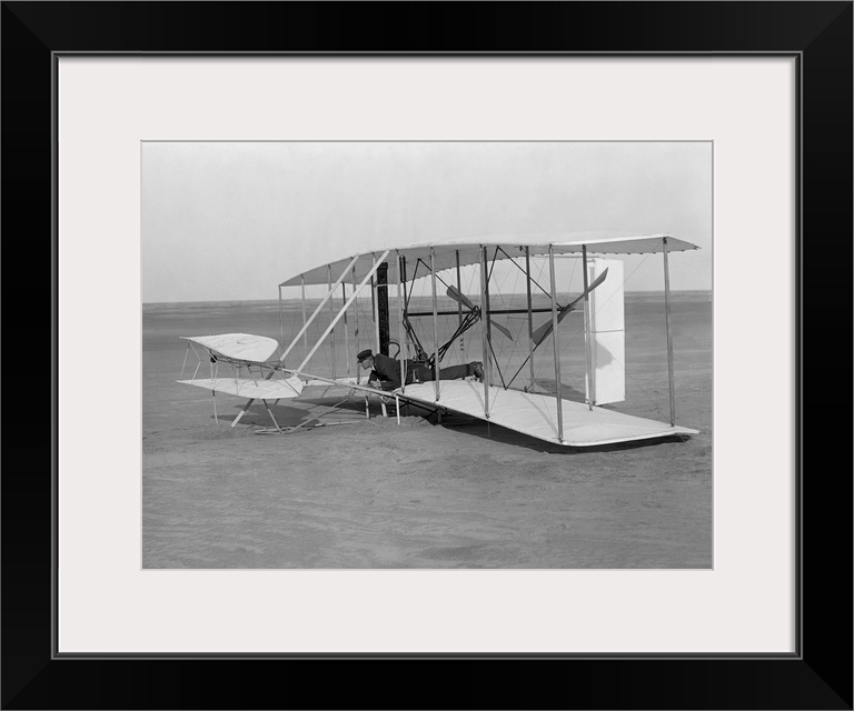 <p>December 14, 1903 - Wilbur Wright lying in a damaged prototype after an unsuccessful flying attempt in Kitty Hawk, North Carolina.</p>
