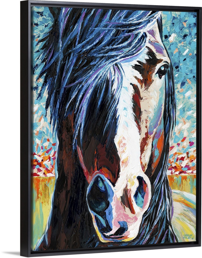 <p>Contemporary portrait of a wild horse with a white blaze on its face.</p>